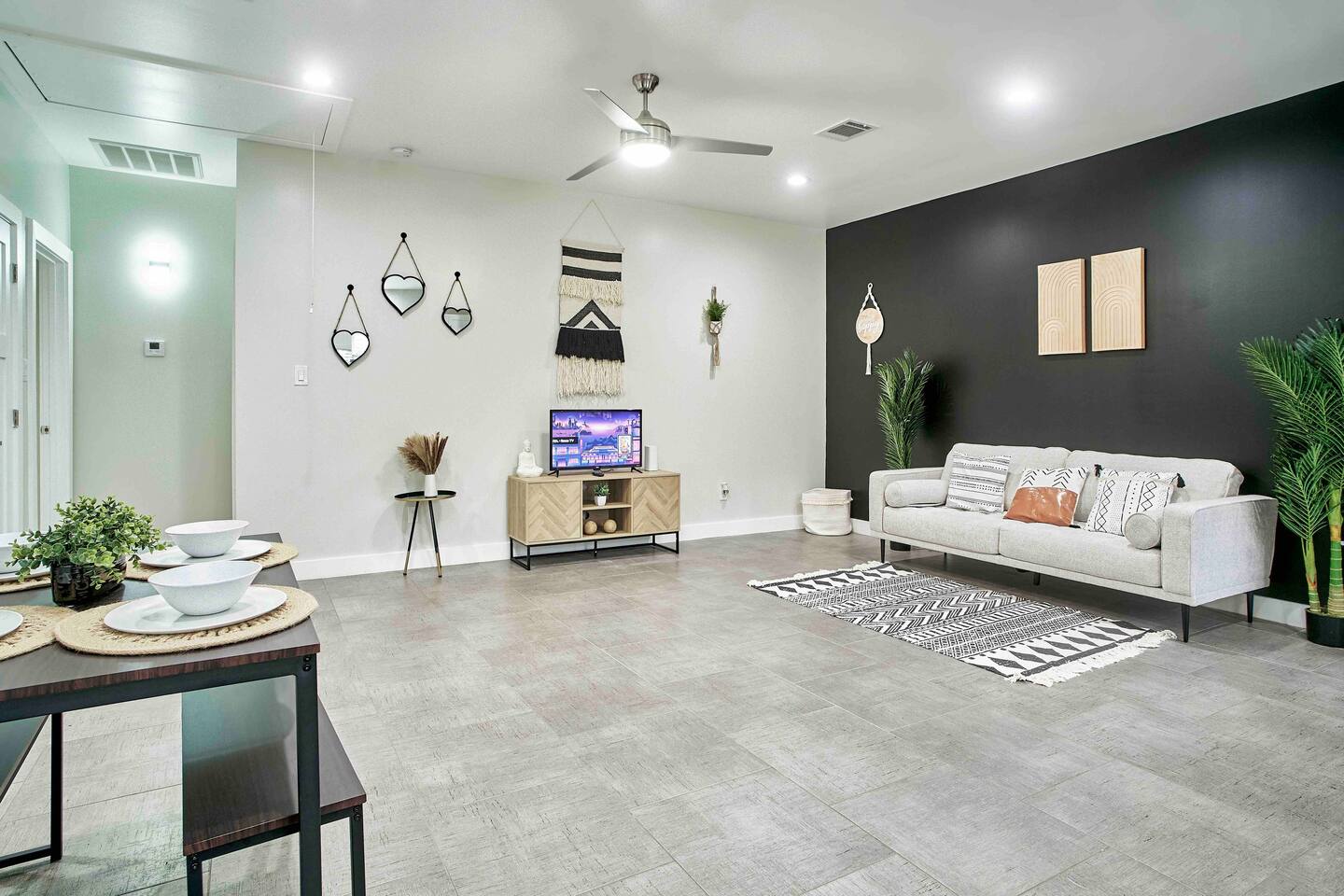Welcome to Boho Houston, a newly constructed home in 2021. Whether it's an intimate space for you and your partner, a much-needed staycation, or a large area to host friends, Boho Houston has all your needs covered. This property is a 3 bedroom 3 full bath. Each bedroom comes equipped with its own private bathroom & TV.
