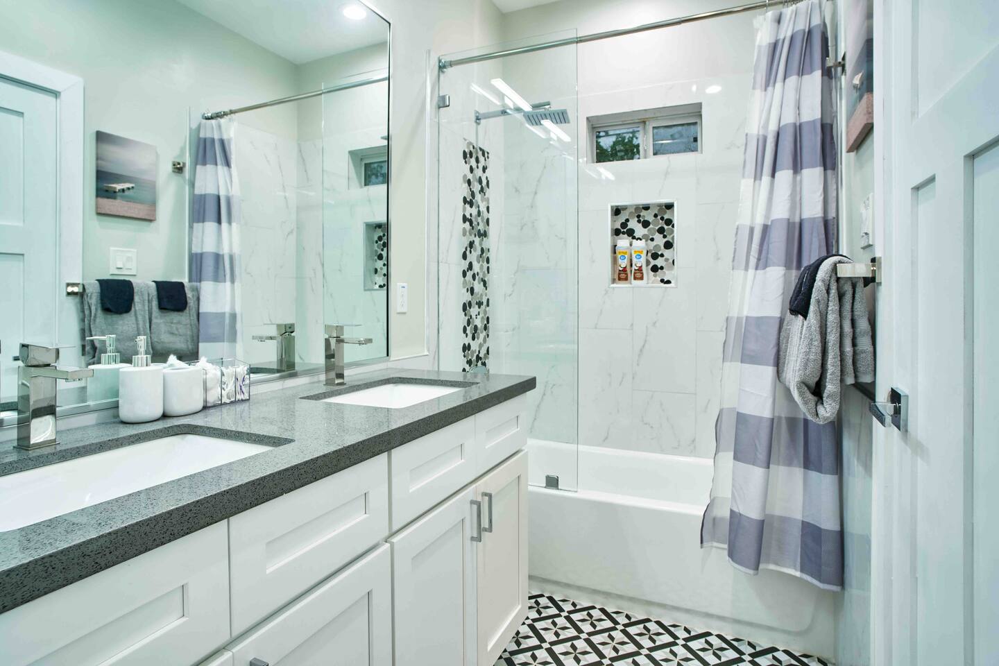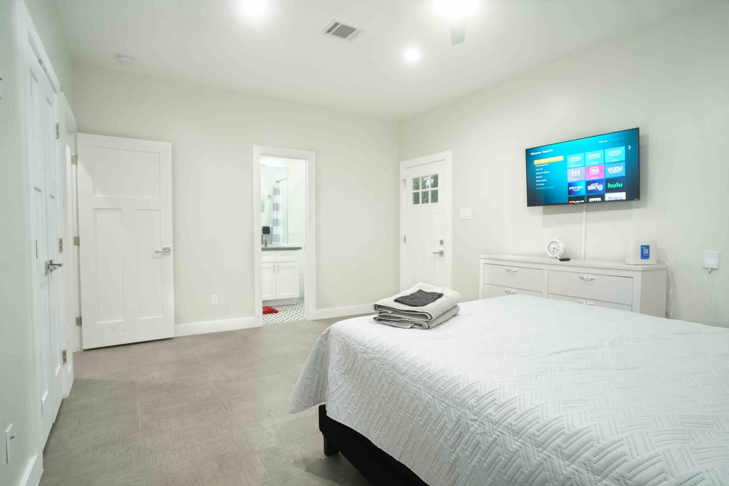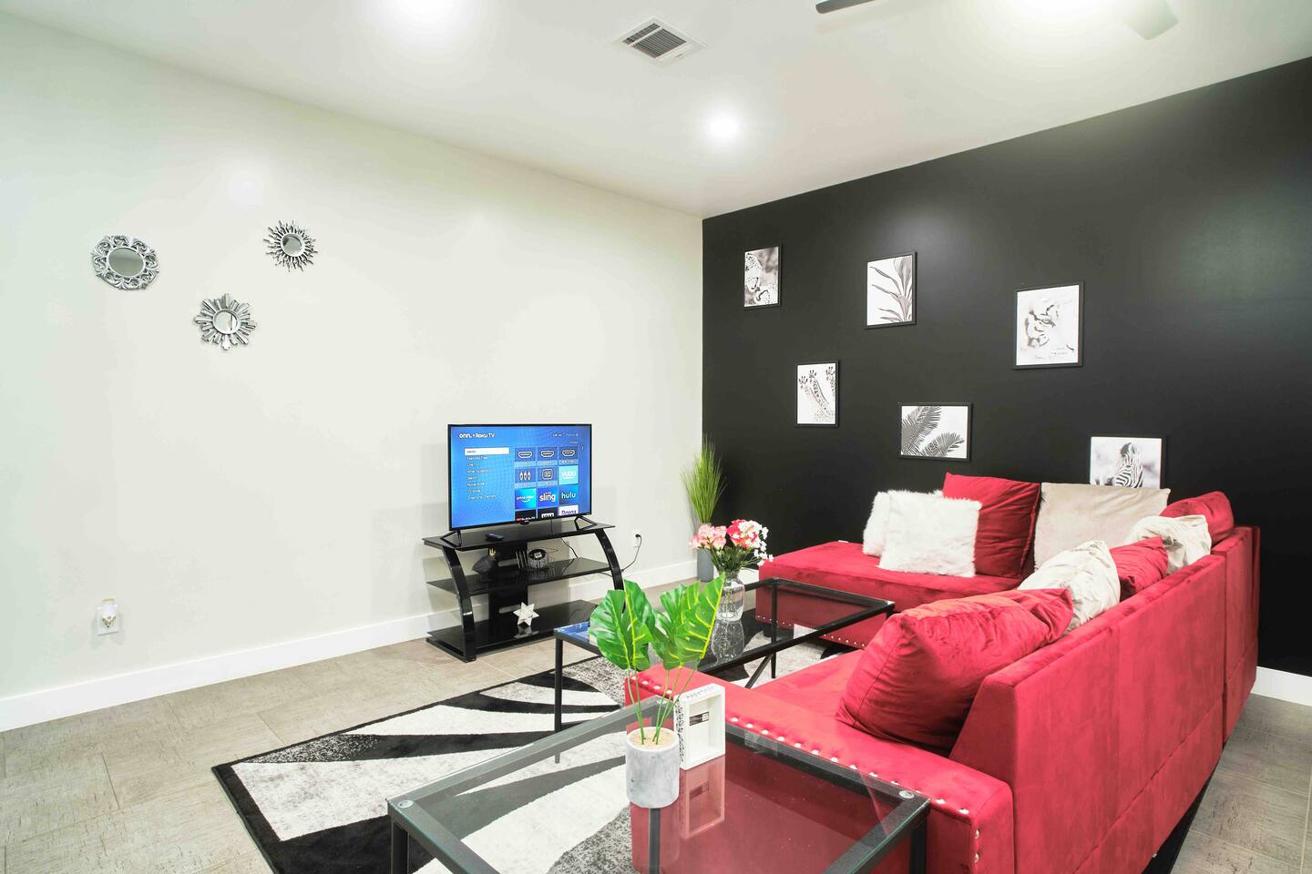 Discover the perfect Houston getaway in this newly constructed 3-bedroom, 3-full bath home, designed for ultimate comfort and privacy. Each bedroom comes with its own private bathroom and TV, making it ideal for intimate getaways, staycations, or hosting friends. Whether you're here for relaxation or exploration, this stylish and spacious retreat ensures a memorable stay. Your perfect Houston retreat is just waiting to welcome you! ** Couch is now Grey instead of red**