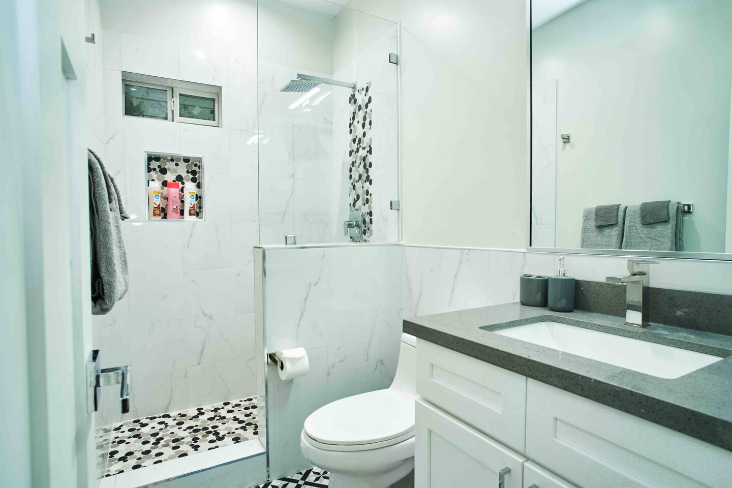 Recently Built this modern style home sleeps up to 8 comfortably & boasts amenities such as 3 private restrooms , grill, kitchen, Gated parking & more! BEDROOMS: This home sleeps max 8 guests in 3 QUEEN beds, 1 sofa, and 1 QUEEN airbed There is a Smart TV in the living space, and a Smart TV in every room. See bed count below: Master Bedroom: 1 Queen bed, Smart TV, en-suite Master bath. V Bedroom 2: 1 Queen bed, Smart TV, en-suite bathroom V Bedroom 3: 1 Queen bed , Smart TV and en-suite bathroom. Common Area: Smart Tv, 1 couch, and 1 Queen Air mattress. * Additional beds cannot be provided AMENITIES: As a courtesy, The Taylor Team provides a "starter pack" of supplies for guests including toilet paper, paper towels, and trash bags. This is to make our guests comfortable and also to relieve the stress of having to go to the store upon arrival to the home. Guests are still personally responsible for purchasing these items if they have depleted the “Starter pack”